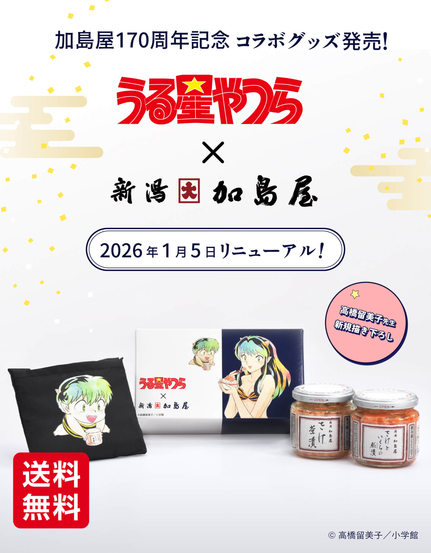 新潟市ご出身である高橋留美子先生による新規描き下ろしを使用した「うる星やつらコラボ中ビンセット」を「さけ茶漬」と「さけといくらの糀漬」に変更して販売を再開します!