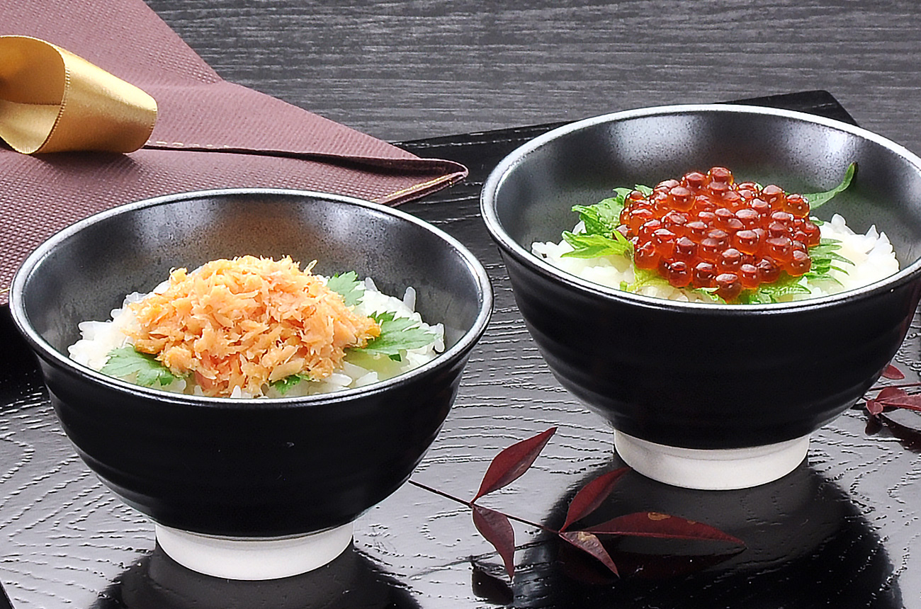 そのままご飯に乗せてもアレンジしても、多彩な味わいを楽しめるどんぶりセットです。ご自宅用はもちろん、贈り物としてもお使いいただけます。