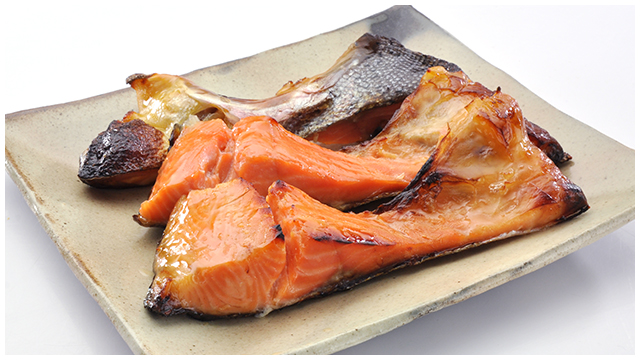 サーモントラウトのカマ部分を越後味噌に漬け込みました。
