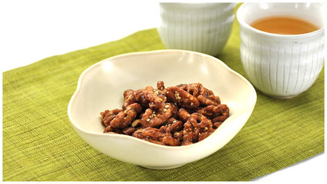ほんのり甘く、かりっと香ばしい「くるみの飴炊き」です。