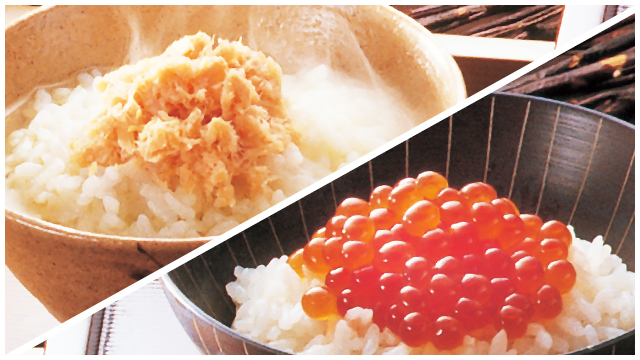 当社人気NO.1の「さけ茶漬」をはじめ「いくら醤油漬」「貝柱のうま煮」など、