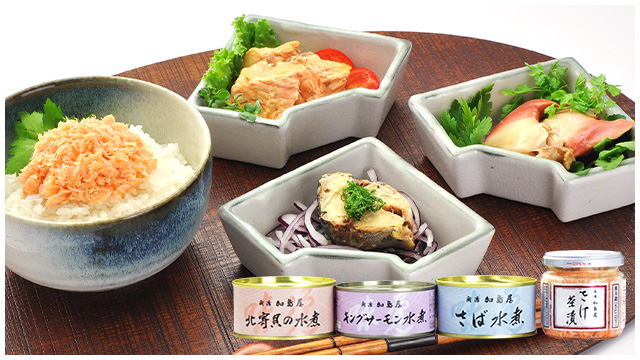 素材の味を活かした贅沢な缶詰「キングサーモン水煮・北寄貝の水煮・さば水煮」と人気の「さけ茶漬」をセットにした今月のおウチDEごはん月替わり商品「中瓶と缶詰 UG-4SC」に、人気の切り落とし「銀鱈粕漬切り出し」他、「手みやげ・おみやげ特集」として、新潟の味をお楽しみいただける加島屋おすすめの品やお中元ギフトなどを、ご紹介させていただきます。