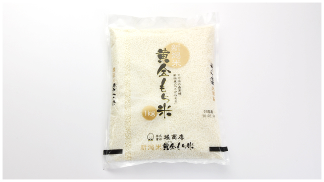 新潟県産のもち米「こがねもち」は色が白く、コシが強いのに歯切れが良いと、もち米品種の中では、