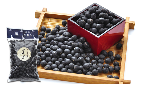 黒豆の煮物は、一年をまめに(活発に)過ごせるようにとゲンを担ぎ、お正月のおせち料理には欠かせない一品のひとつです。皮は丈夫で、ふっくらと煮上がると云われており、古くから上質で有名な丹波産の黒豆をご用意しました。