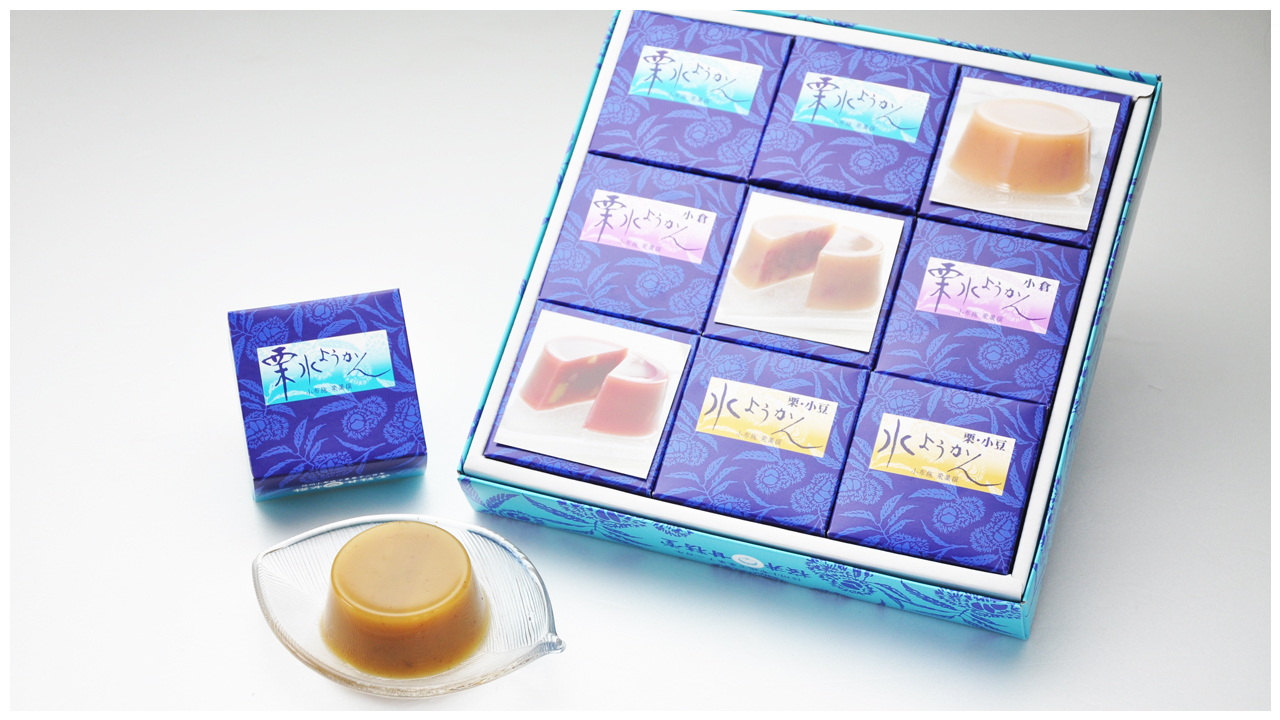 夏の贈答品にぴったりな三種類の水ようかんの詰め合わせを販売いたします。