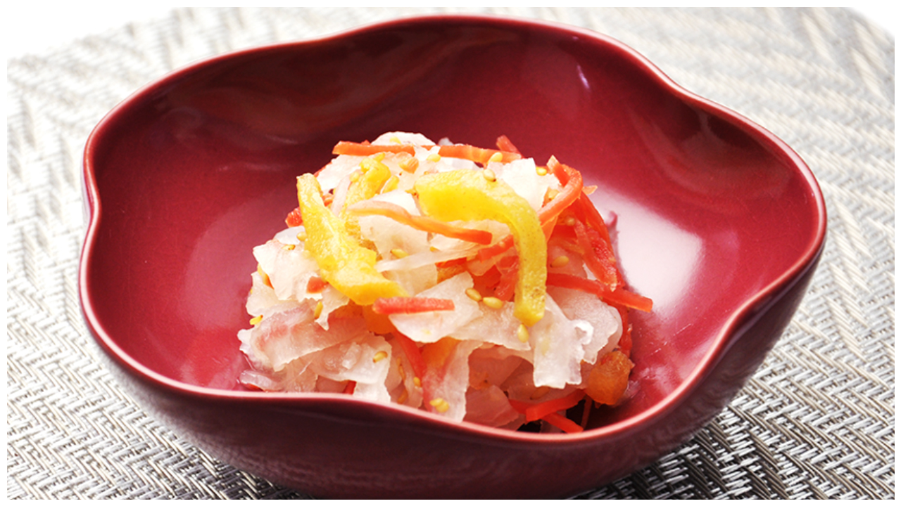 柿・大根・にんじんの鮮やかな彩りが目を楽しませ、箸休めの小鉢の一品や、