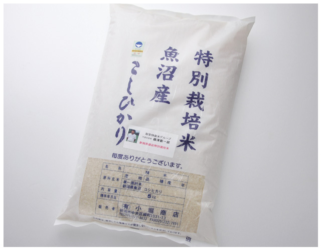 十日町市、取安特栽米グループの減農薬で特別栽培したこだわりの「こしひかり米」です。