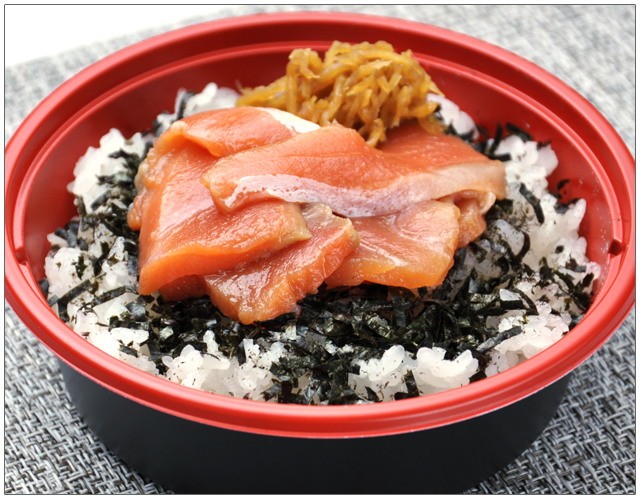 脂ののったサーモントラウトのお刺身を生姜をきかせた醤油ダレに漬け、お召し上がり易いサイズのお弁当にいたしました。