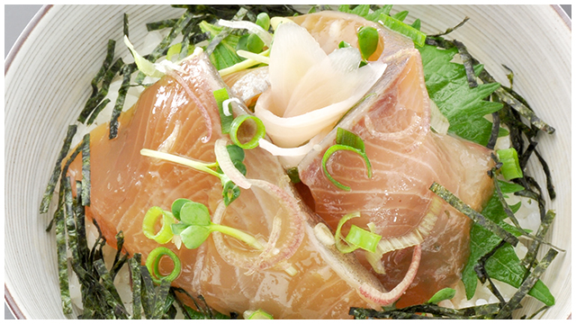 爽やかな風味でコリコリとした食感の「かんぱち」を特製ダレにじっくり漬け込んだ