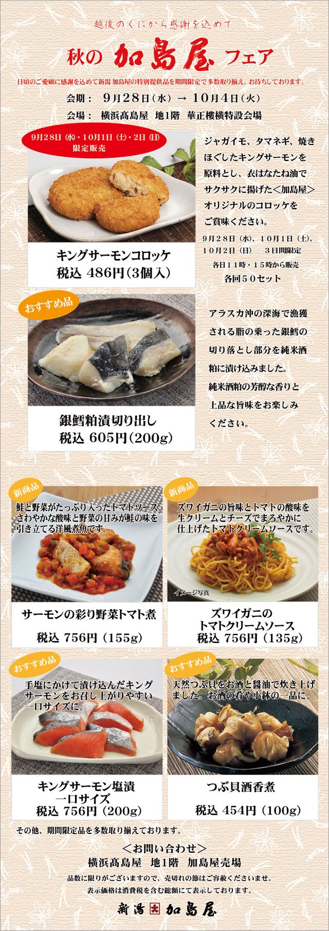 日頃の感謝を込め 髙島屋横浜店 にて「秋の加島屋フェア」を開催いたします。