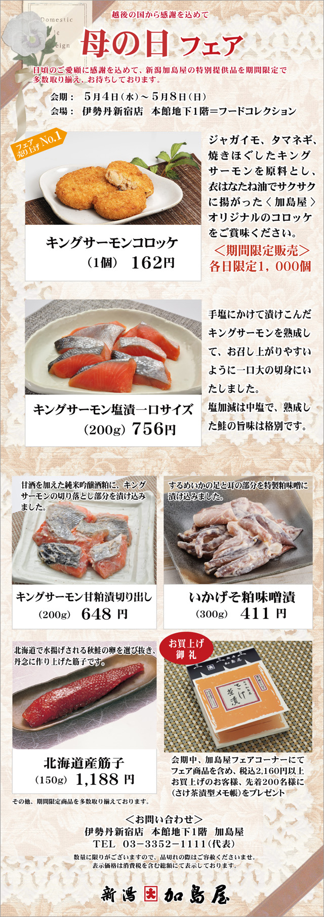 「春の加島屋フェア(母の日フェア)」を開催いたします。