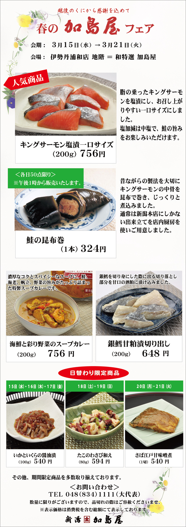 日頃の感謝を込め 伊勢丹浦和店 にて「春の加島屋フェア」を開催いたします。