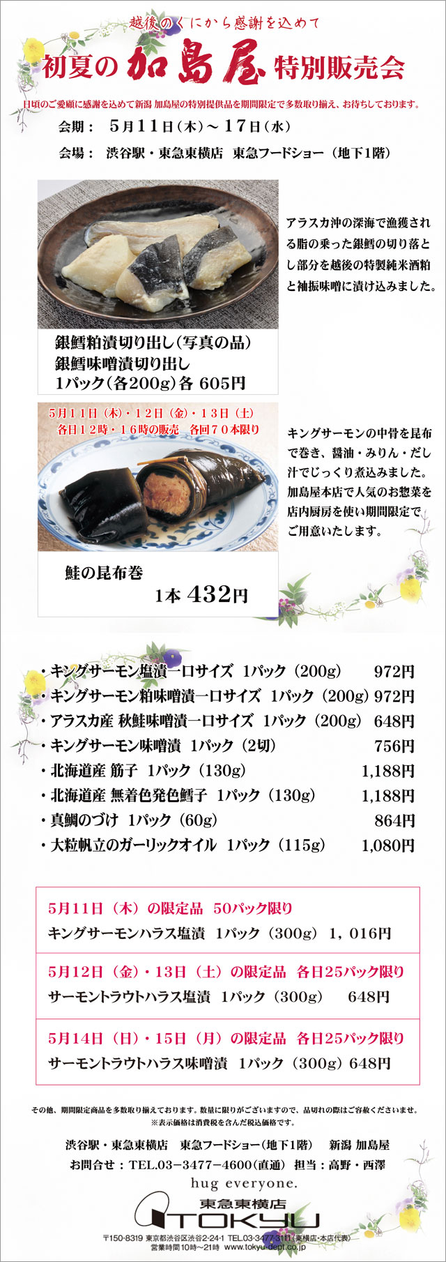 - 会場:南館 地下1階 東急フードショー 新潟 加島屋