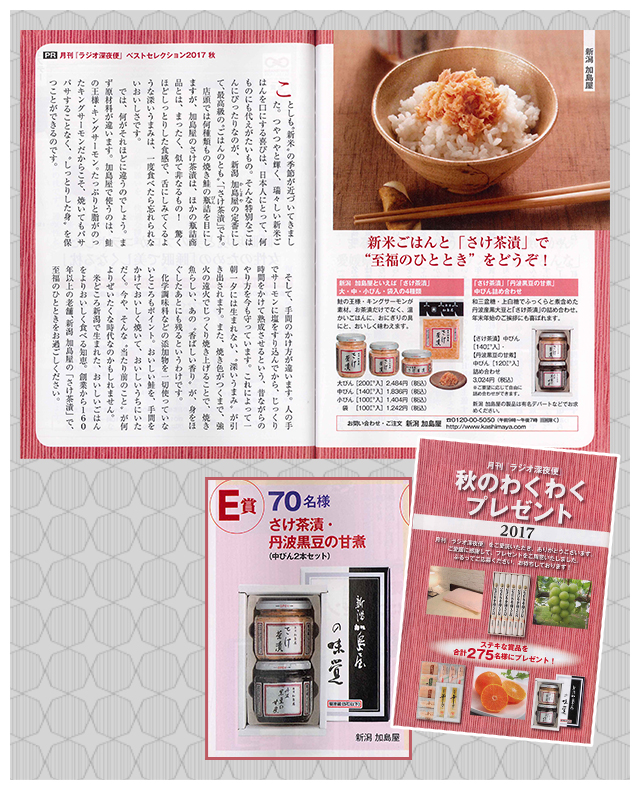 また、ベストセレクション2017秋のコーナーでさけ茶漬を紹介していただきました。
