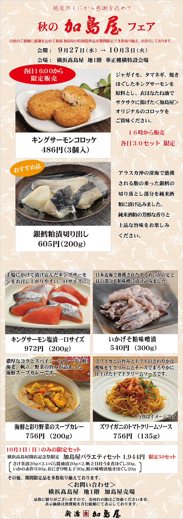 日頃の感謝を込め 髙島屋横浜店 にて「秋の加島屋フェア」を開催いたします。