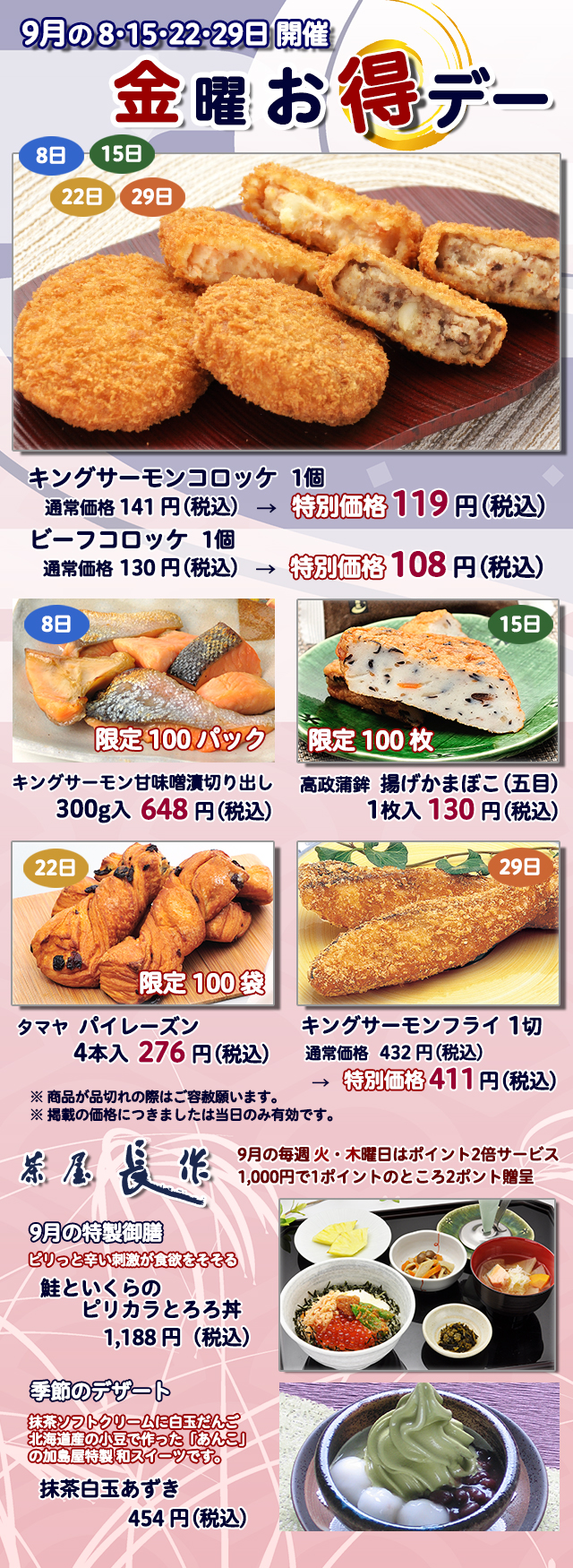 毎月恒例になりました「金曜お得デー」のお知らせです。