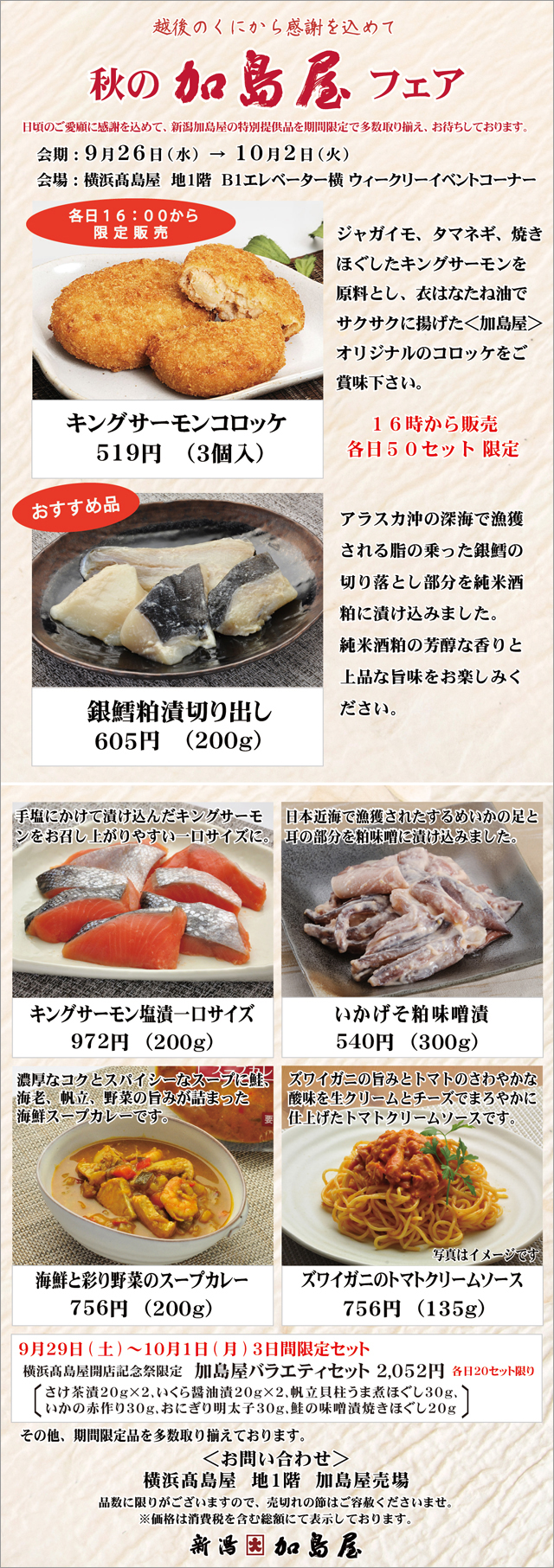 日頃の感謝を込め、高島屋横浜店にて「秋の加島屋フェア」を開催いたします。