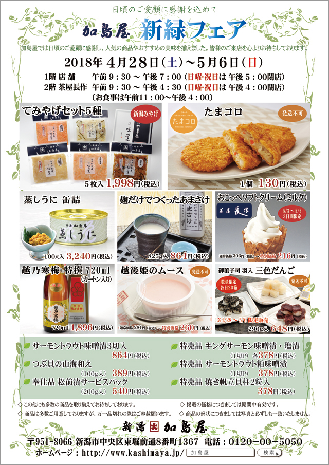 日頃のご愛顧に感謝を込めて「新緑フェア」を開催いたします。