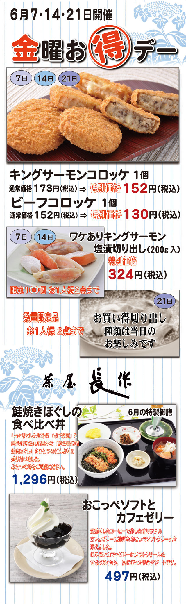 毎月恒例になりました「金曜お得デー」のお知らせです。