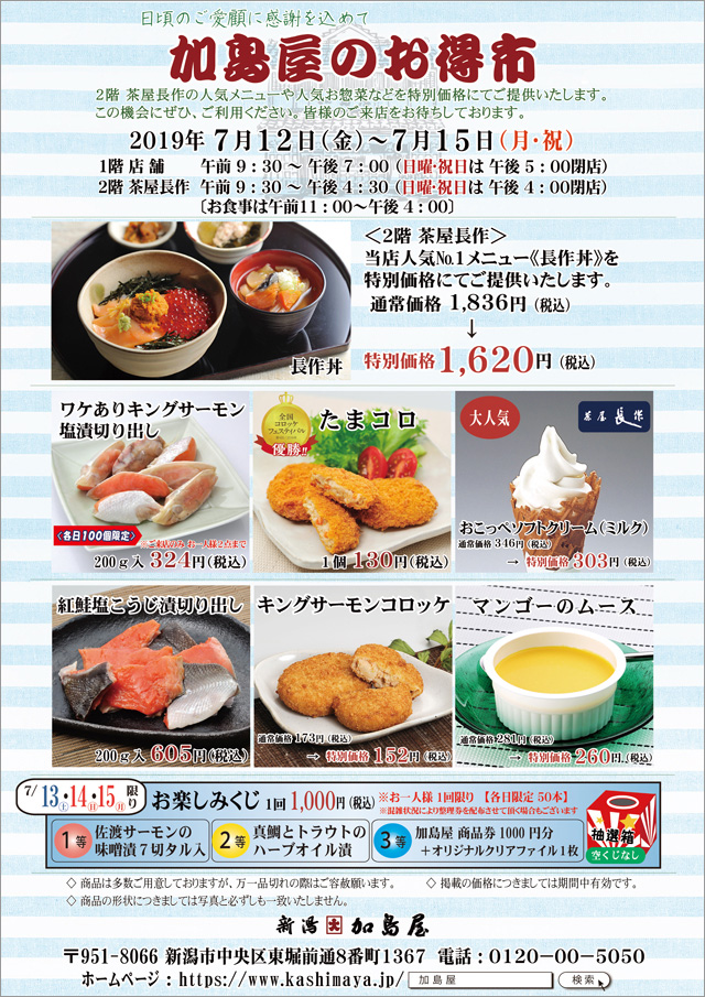 - ※ 加島屋のお得市は本店のみの開催となります。