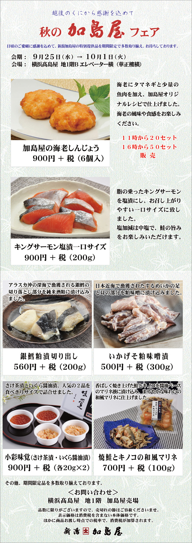 日頃の感謝を込め、高島屋横浜店にて「秋の加島屋フェア」を開催いたします。