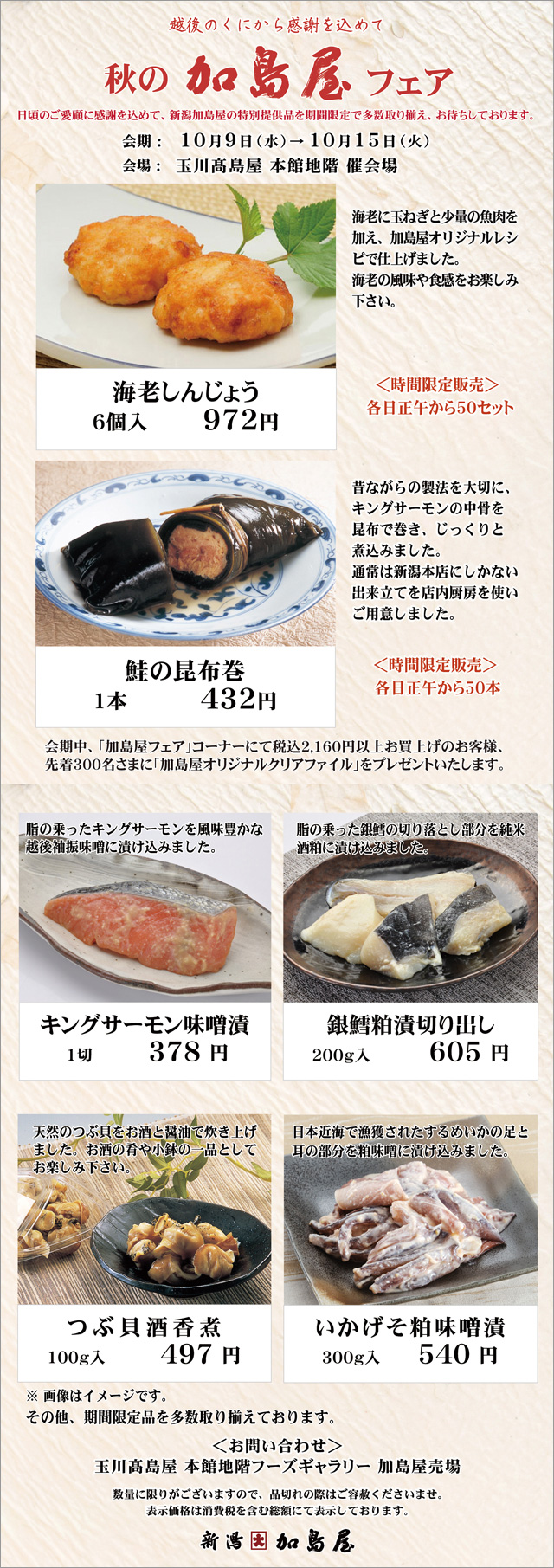 日頃の感謝を込め 髙島屋玉川店 にて「秋の加島屋フェア」を開催いたします。