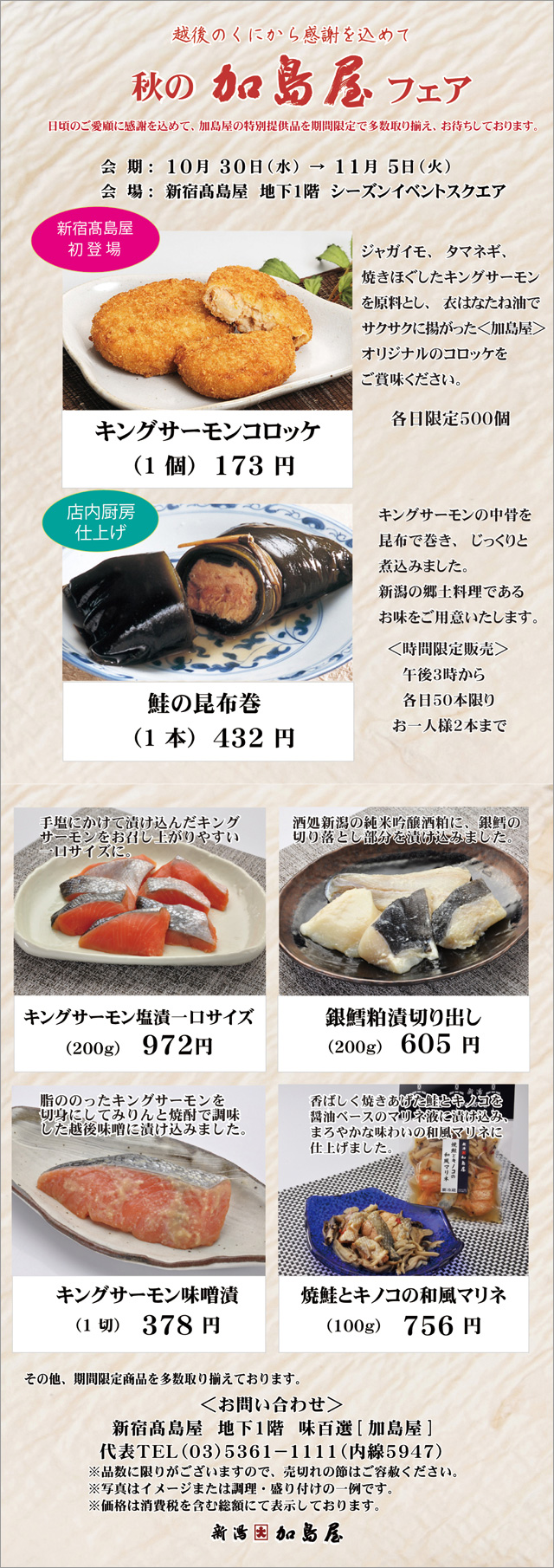 日頃の感謝を込め 髙島屋新宿店 にて「秋の加島屋フェア」を開催いたします。