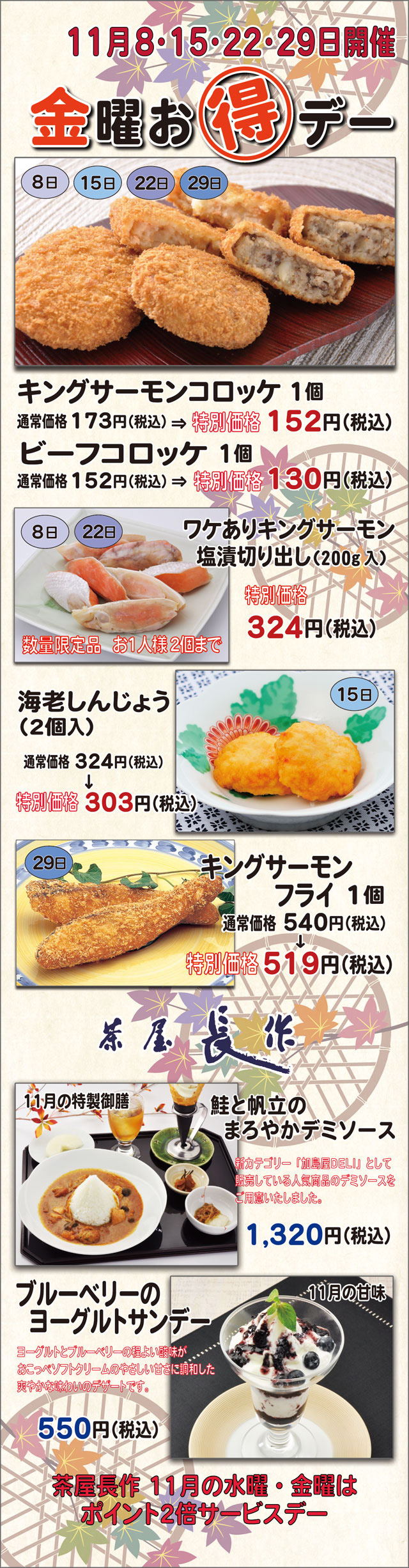 毎月恒例になりました「金曜お得デー」のお知らせです。