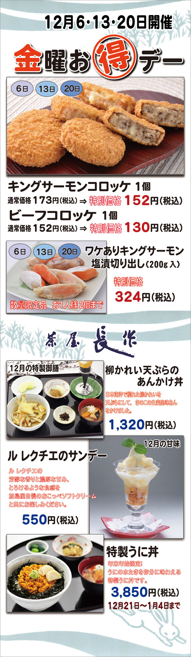 毎月恒例になりました「金曜お得デー」のお知らせです。
