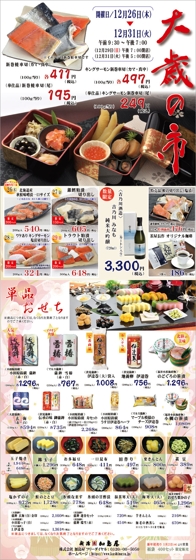 この一年のご愛顧に感謝し「大歳の市」を開催いたします。