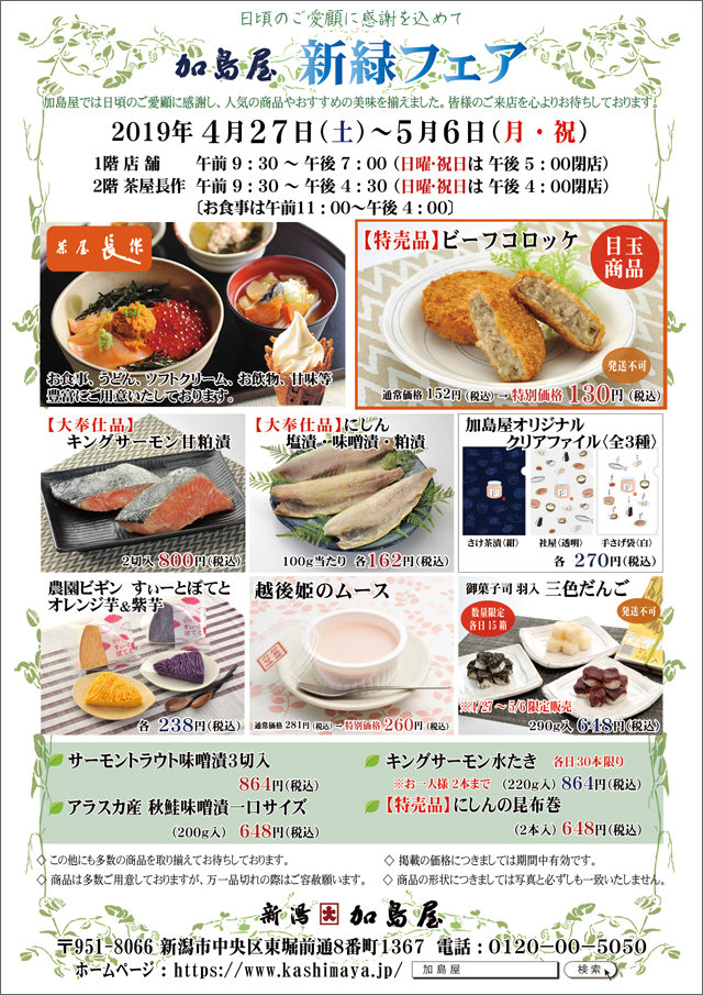 日頃のご愛顧に感謝を込めて「新緑フェア」を開催いたします。