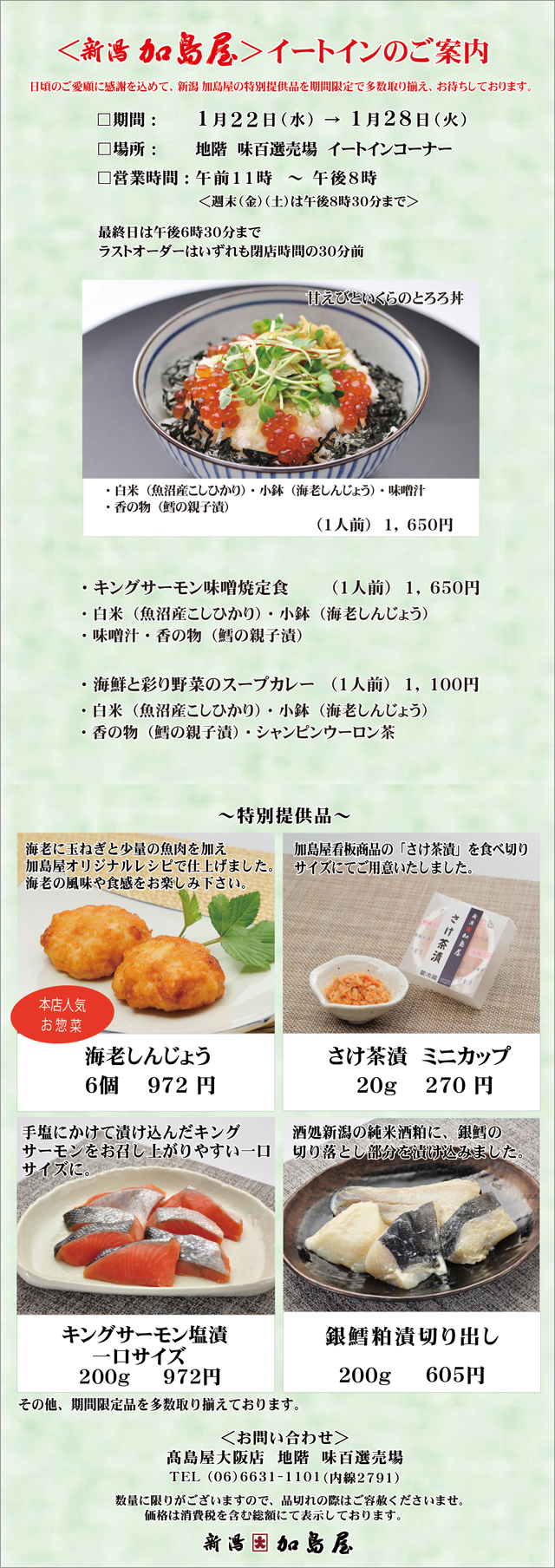 日頃の感謝を込め 髙島屋大阪店にて「味百選イートイン」を開催いたします。