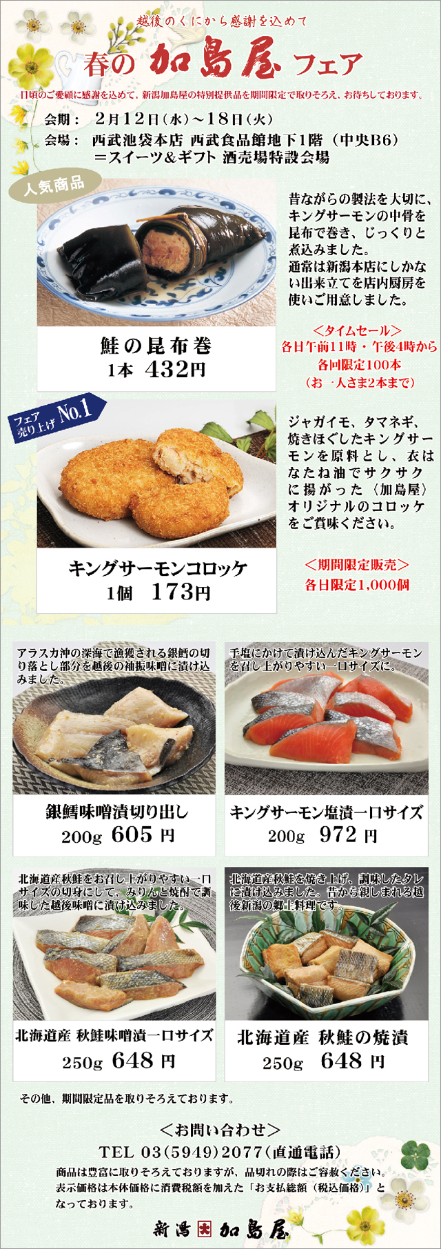 日頃の感謝を込め 西武池袋本店 にて「春の加島屋フェア」を開催いたします。