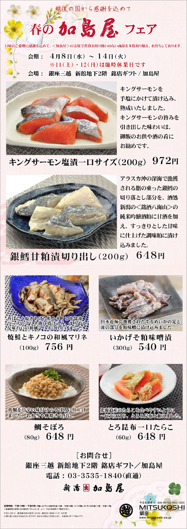 日頃の感謝を込め、 銀座三越にて「春の加島屋フェア」を開催いたします。