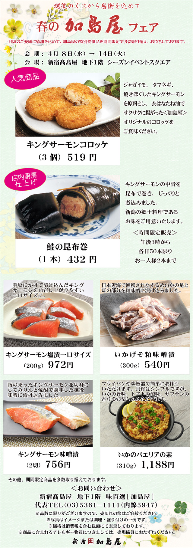 日頃の感謝を込め、 髙島屋新宿店にて「春の加島屋フェア」を開催いたします。