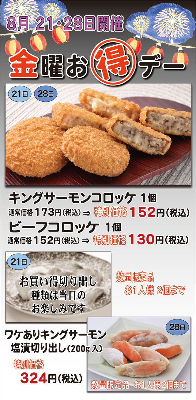 毎月恒例になりました「金曜お得デー」のお知らせです。