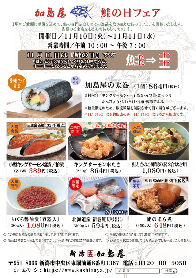 ※ 鮭の日フェアは本店のみの開催となります。