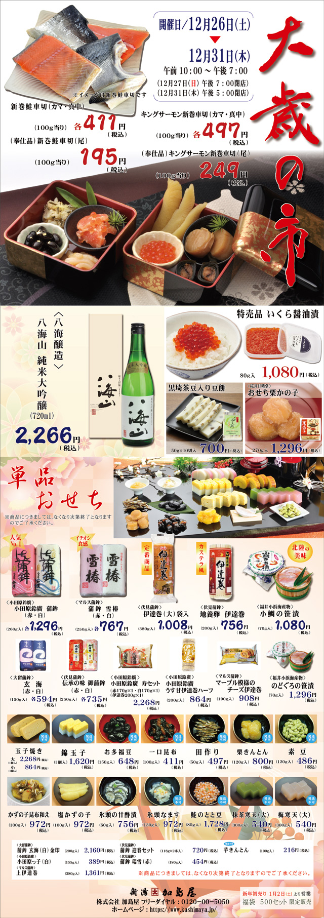 この一年のご愛顧に感謝し「大歳の市」を開催いたします。
