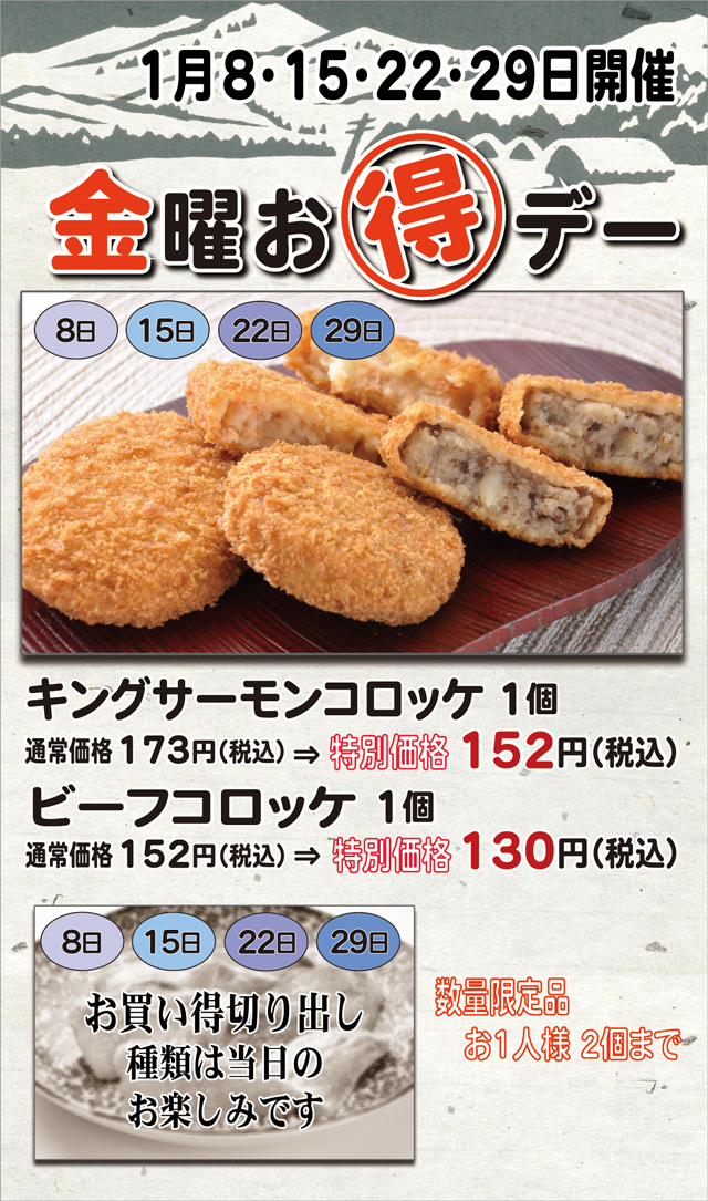 毎月恒例になりました「金曜お得デー」のお知らせです。