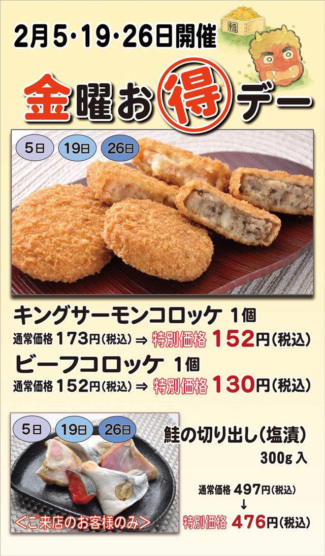 毎月恒例になりました「金曜お得デー」のお知らせです。