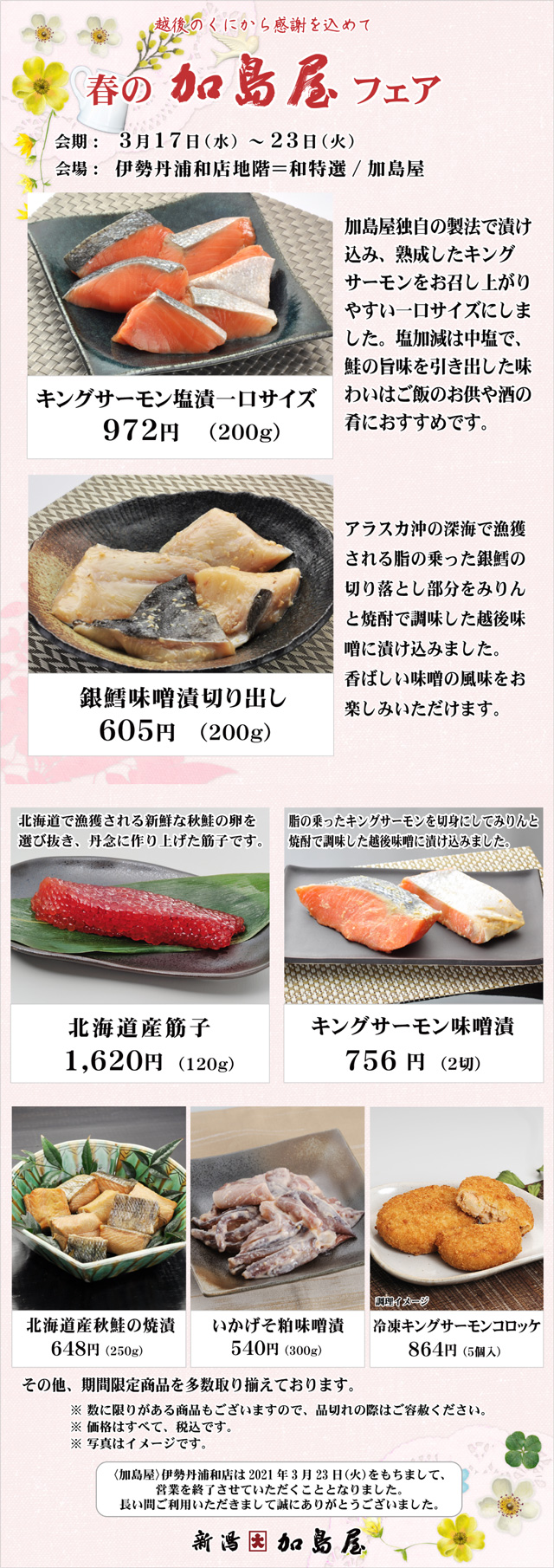 日頃の感謝を込め、伊勢丹浦和店 にて「春の加島屋フェア」を開催いたします。