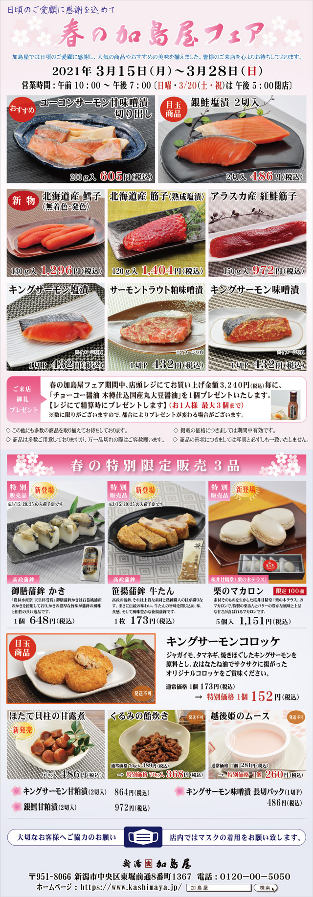 日頃のご愛顧に感謝を込め「春の加島屋フェア」を開催いたします。