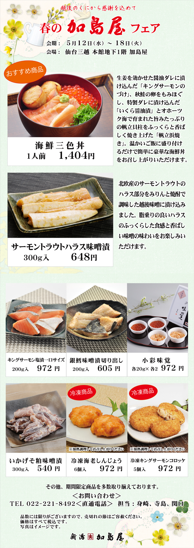日頃の感謝を込め、仙台三越にて「春の加島屋フェア」を開催いたします。