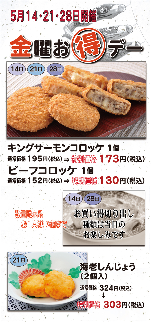 毎月恒例になりました「金曜お得デー」のお知らせです。