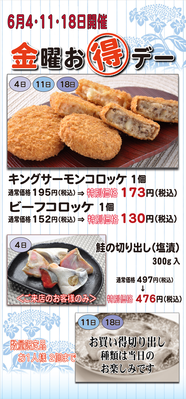 毎月恒例になりました「金曜お得デー」のお知らせです。