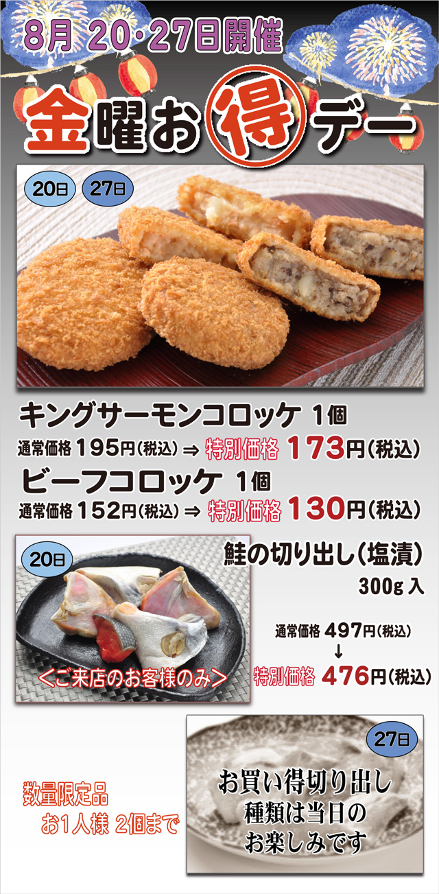 毎月恒例になりました「金曜お得デー」のお知らせです。