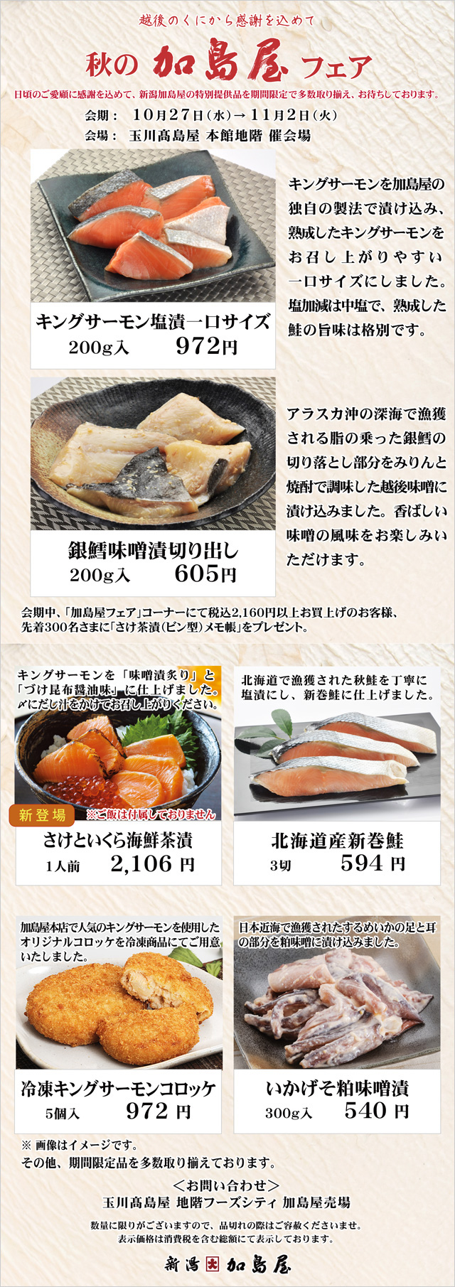 日頃の感謝を込め 髙島屋玉川店 にて「秋の加島屋フェア」を開催いたします。