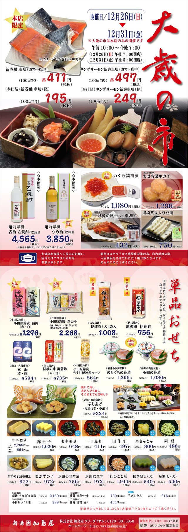 この一年のご愛顧に感謝し「大歳の市」を開催いたします。