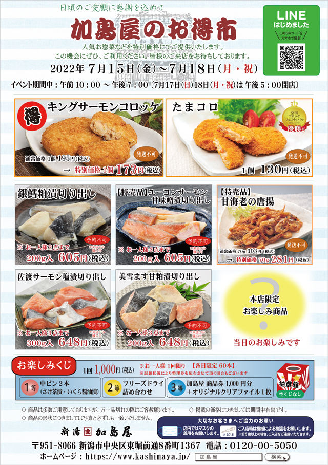 - ※ 加島屋のお得市は本店のみの開催となります。