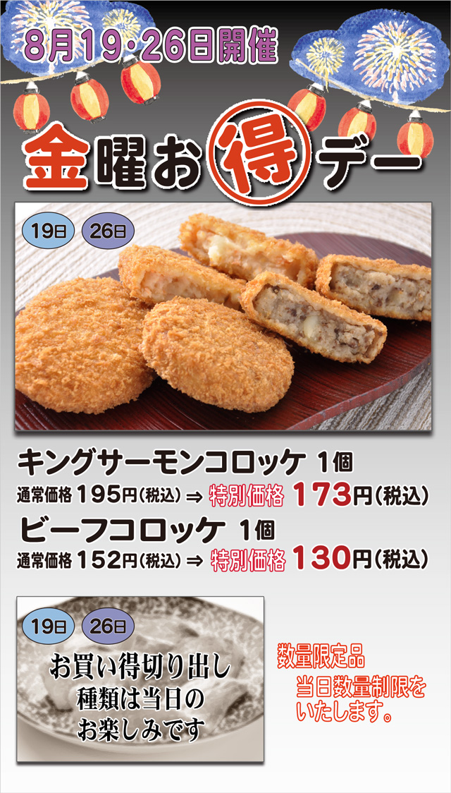 毎月恒例になりました「金曜お得デー」のお知らせです。